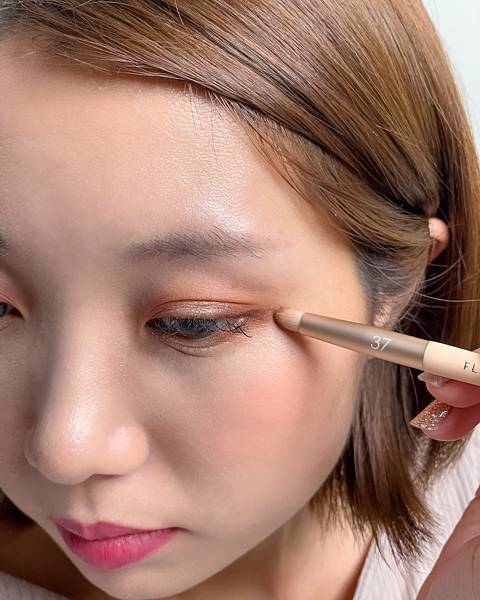 我都會用34號沾橘色暈染後,用37號在眼尾處加深棕色細節